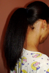 Thanks to the tip from Macherieamour, after my hair is dried and my roots blown outI wrap (doobie) my hair andcover with saran wrap and sit under the dryer for 10 min. The result is shiny, bouncy, super straight hair. I do a twist out some times and on those days I conditioner wash and apply KemiOyl after my leave in. I wrap my hair in alternating directions each night and to prevent thinning I try not to wrap too consistently. Some nights I will do pin curls, other nights I part my hair in two sections and twist each into a bun. In the morning I have waves. I moisturize the last few inches of my hair every 2-3 days. Maintaining bounce and shine is very important to me. My hair gets weighed down easily and I don’t like the feel of heavy hair. With a good deep conditioner I dont need to moisturize everyday.