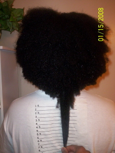 My hair is brastrap length about 8-8 1/2 inches on the growth in inches shirt. I am a natural 4b.