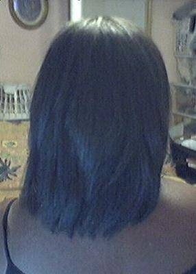 The front is between 5-6 inches long, the middle and back are 7 to 8.5 inches long. My goal is to have all of my hair the same length, to the bottom of my bra strap.
