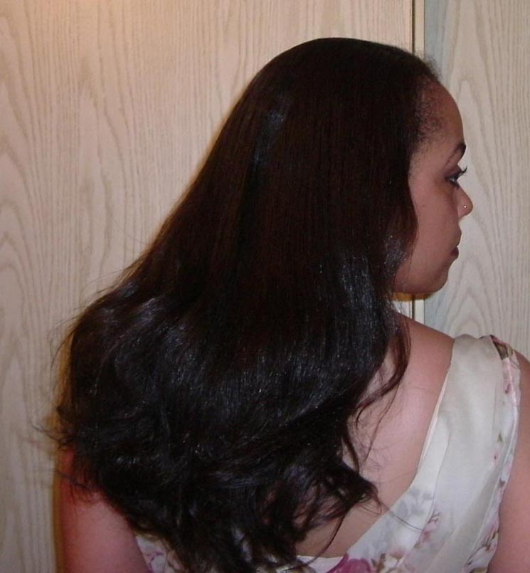 I keep my hair constantly moisturized while its pressed with light applications of oils and IC hair gloss (serum) and/or Aveda Emollient. I Press my hair with Ultra Sheen Satin Creme Press Lotion (which is now discontinued) that I have a little stash of. I recently tried Redken Heat Glide and it worked pretty good too, but I’m still looking for that perfect pressing product now that the Satin Creme press lotion has been discontinued. I basically only dust my ends whenever I press my hair.